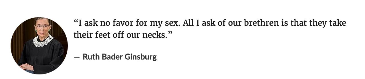 From her perch at the ACLU, the late Justice Ruth Bader Ginsburg spawned a civil-rights revolution beginning in the 1970s through her approach to five words, “on the basis of sex.” She put the cause most plainly and evocatively when she said: “I ask no favor for my sex. All I ask of our brethren is to take their feet off our necks.”