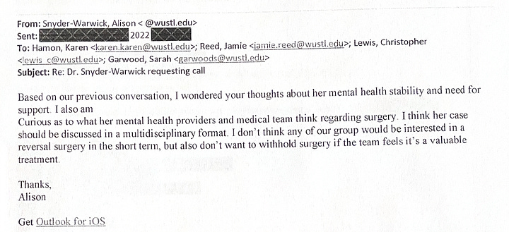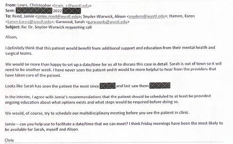 “I don’t think any of our group would be interested in a reversal surgery in the short term,” Dr. Snyder-Warwick wrote, “but also don’t want to withhold surgery if the team feels it’s a valuable treatment.”