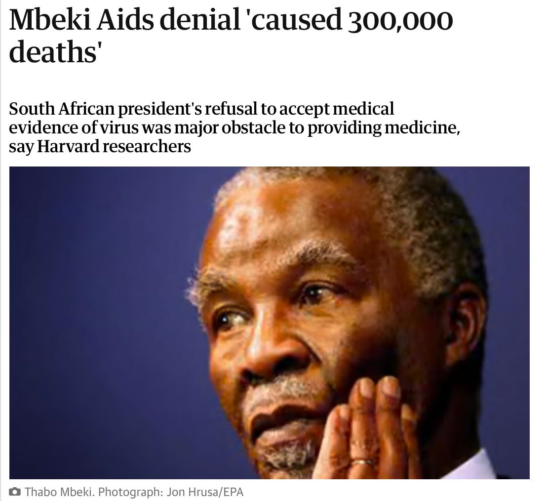 The Trump funding interruption is without precise historical precedent, but it evokes a macabre chapter in South Africa’s history. During the early 2000s, the nation’s then-president, Thabo Mbeki, fell prey to the influences of American HIV denialists and, as a result, delayed by several years the rollout of antiretrovirals in his nation. Researchers later estimated that this perverse exercise of power cost the nation 2.2 million cumulative years of life among 300,000 people who needlessly died of AIDS.